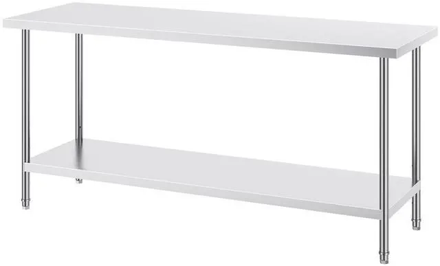 VEVOR Stainless Steel Prep Table, 24 x 72 x 34 Inch, Heavy Duty Metal Worktable with 3 Adjustable Height Levels, Commercial Workstation for Kitchen Garage Restaurant Backyard