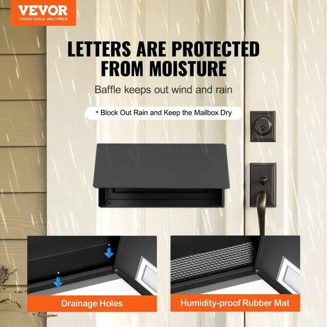 VEVOR Through The Door Key Drop Box, Heavy Duty Steel Through the Door Mailbox with 12" Combination Lock, Mail Drop Box, Black