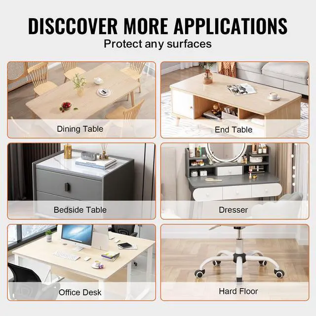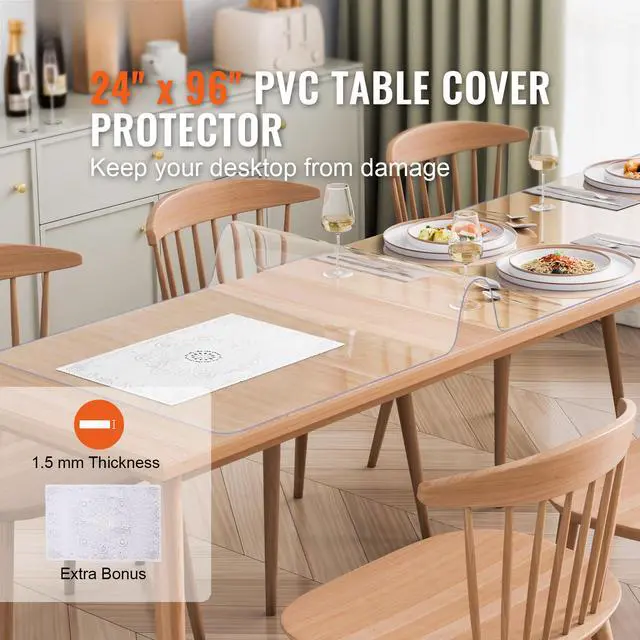 VEVOR PVC Table Protector 24x96 Inch Clear Plastic Desk Protector 1.5mm Thick