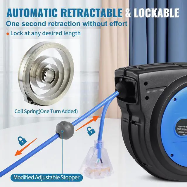 Extension Mode: Automatic Extension,Mounting Options: Wall or Ceiling,Current Overload Protection:13A,Item Model Number: ZX-ZD200,Shell Materials: PP,Wire: SJTOW,Net Weight: 17.9 lbs/8.1 kg,Rated Voltage: AC 125V, 1625W, 60Hz