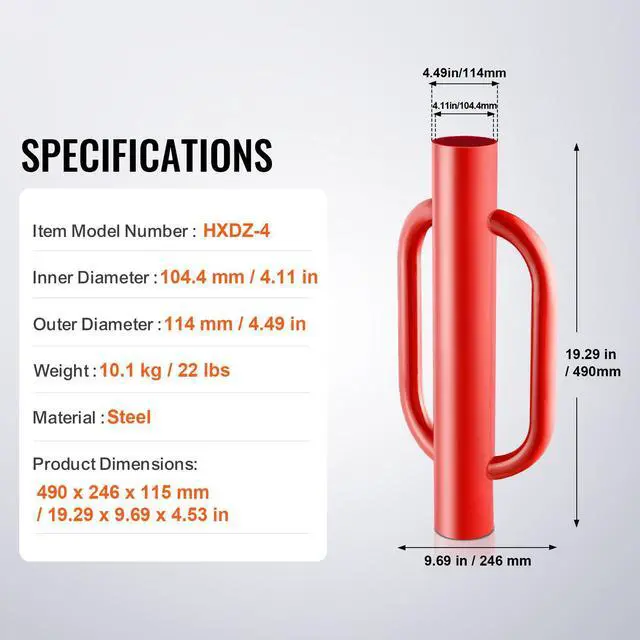 Inner Diameter: 101.6 mm / 4 in,Item Model Number: HXDZ-4,Drive Weight: 10.1 kg / 22 lbs,Material: Steel,Product Dimensions: 490 x 242 x 118 mm / 19.29 x 9.53 x 4.65 in,Net Weight (with all accessories): 10.1kg / 22.2 lbs ±3%