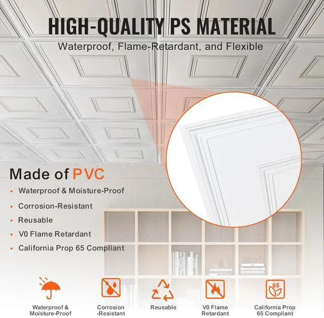 VEVOR Ceiling Tiles 12-Pack 24 x 24 in PVC Easy Installation White Geometric