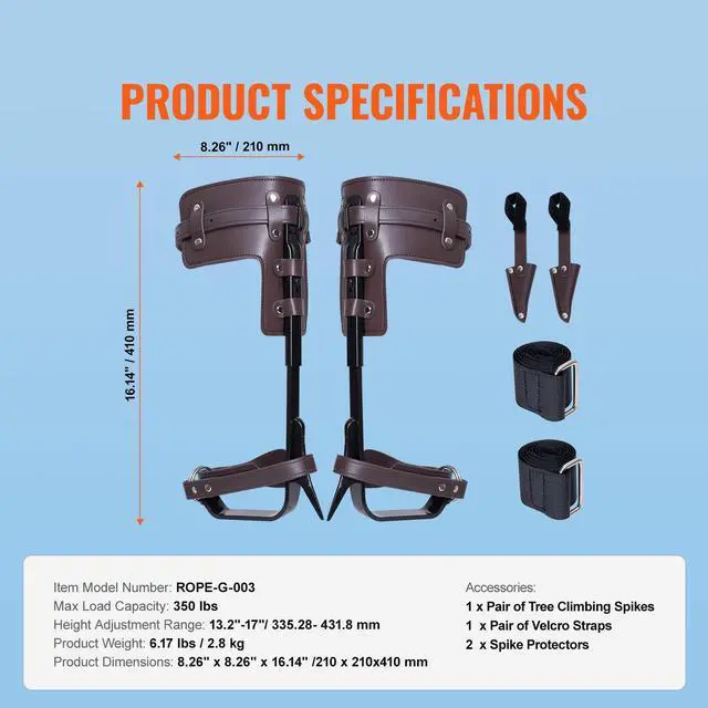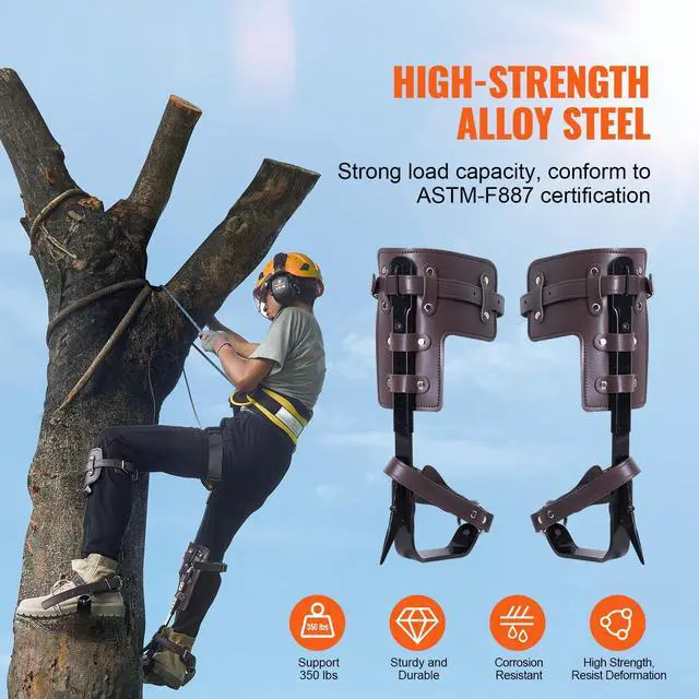 VEVOR Tree Climbing Spikes Climbing Spurs Alloy Steel Arborist Equipment Brown