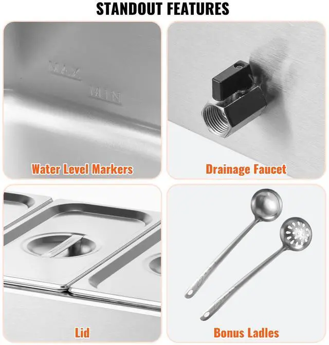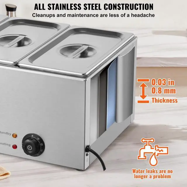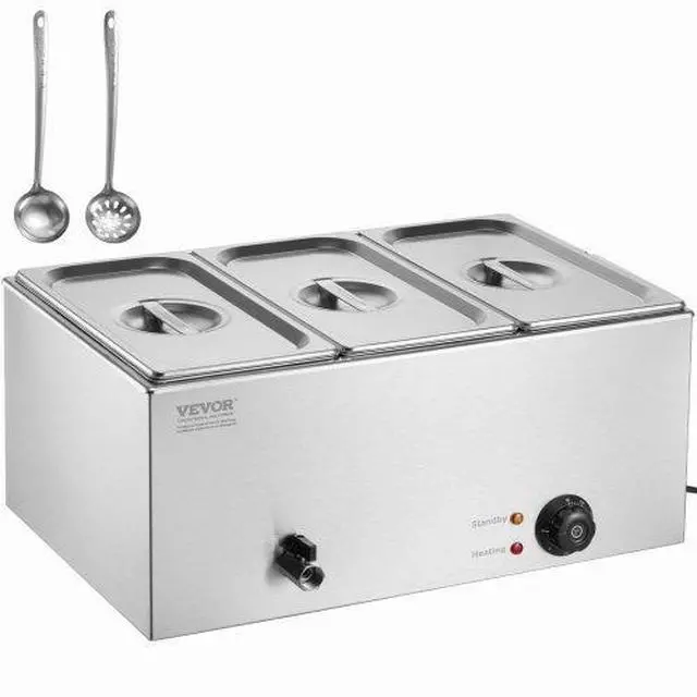 VEVOR Commercial Electric Food Warmer 3-Pan Countertop Buffet 17.4QT Bain Marie