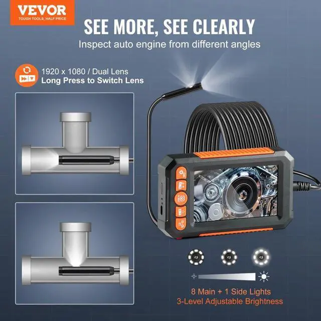 VEVOR Endoscope Camera with Lights Dual Lens Borescope 16.4FT Cable 4.3" Screen