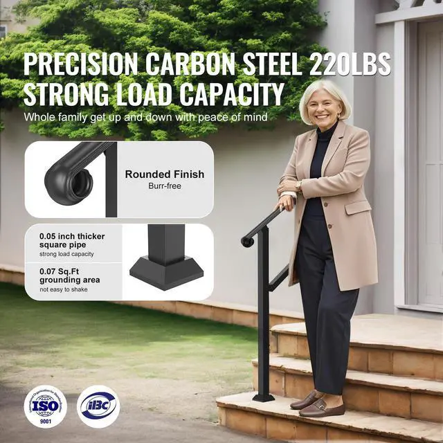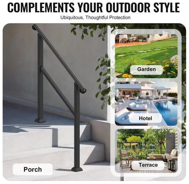 VEVOR 2-3 Step Handrails for Outdoor Steps for Seniors Porch Deck Post