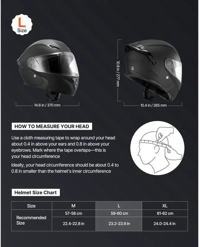 Product Dimension: 14.6 x 10.4 x 10.9 in/370 x 265 x 277 mm,Size: Unmasked Helmet-Size L,Item Model Number: WLT-169,Helmet Size: 23.2-23.6 in/59-60 cm,Net Weight: 3.5 lbs/1.61 kg(Include all accessories)