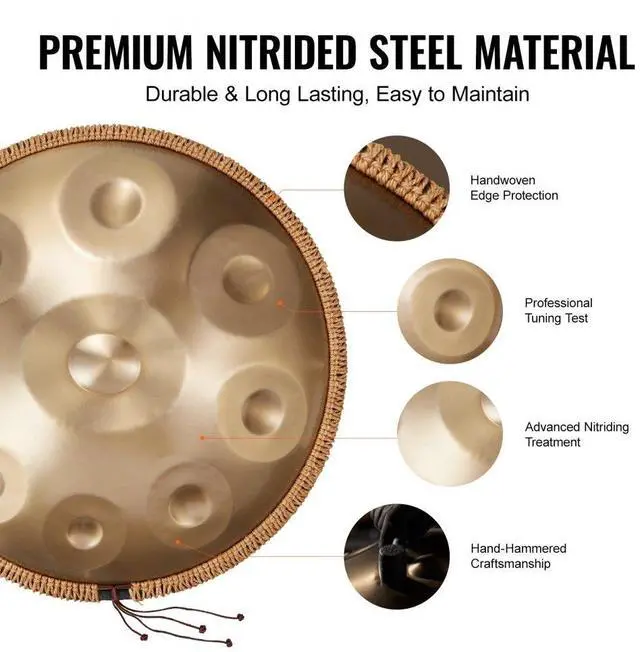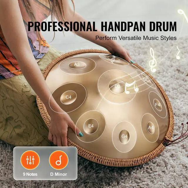VEVOR Handpan Drum 22 in 9 Notes D Minor Steel Hand Drum with Mallets for Adult