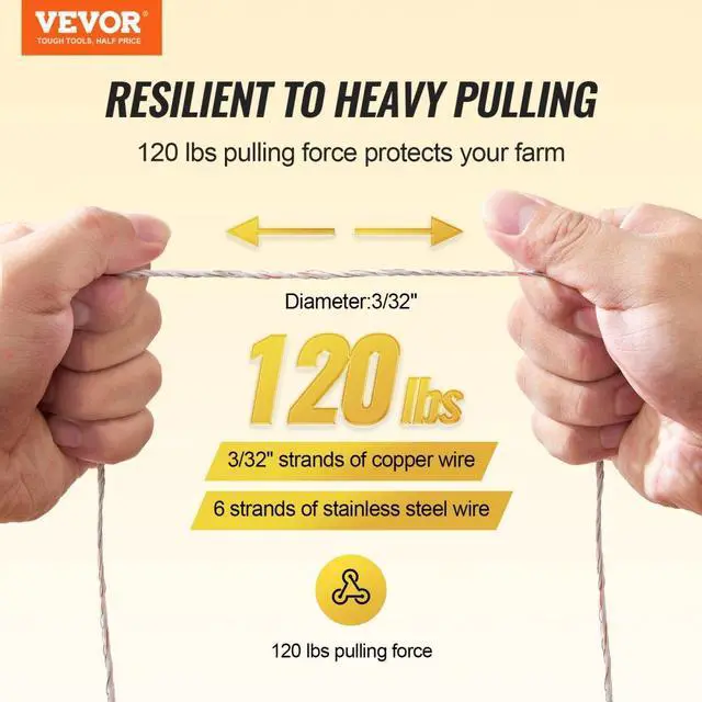 VEVOR 2625Ft 800M Electric Fence Wire Fencing Polywire Horse Cattle Livestock