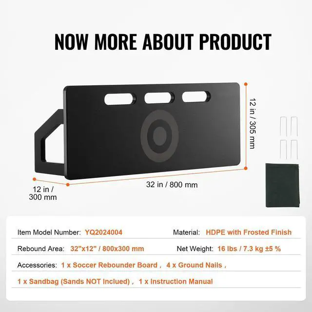 Item Model Number: YQ2024004,Material: HDPE with Frosted Finish,Rebound Area: 32"x12" / 800x300 mm,Net Weight: 16 lbs / 7.3 kg ±5 %