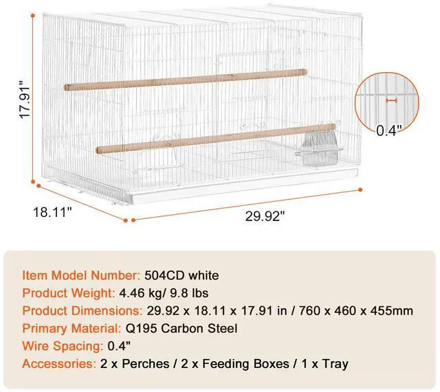 VEVOR Bird Flight Cage 18 in Small Metal Parakeet Cage for Cockatiels White