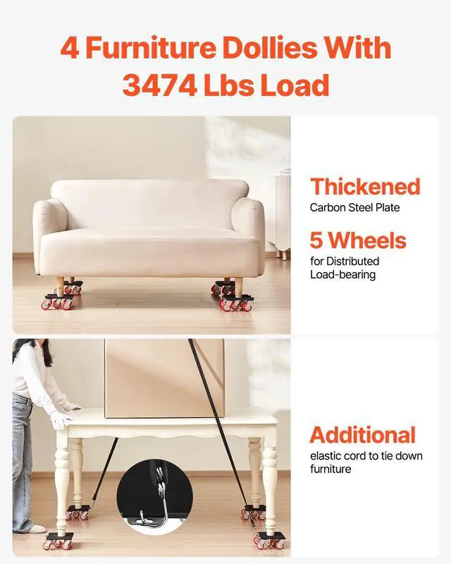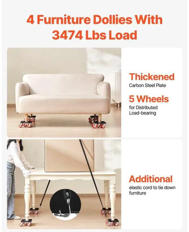 VEVOR Furniture Dolly Heavy Duty Furniture Mover with 5 Wheels 3474 lbs Capacity