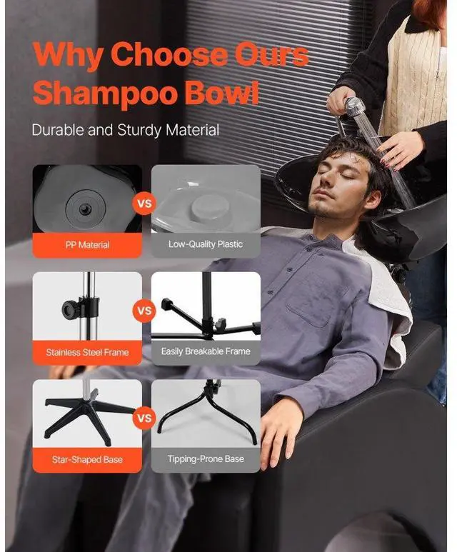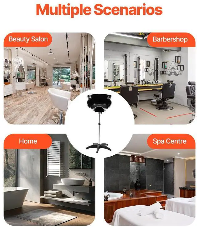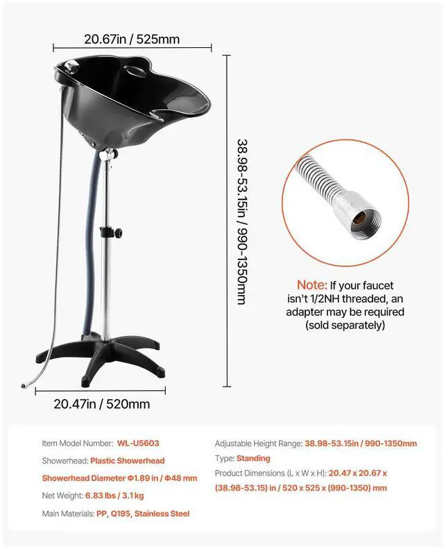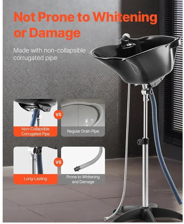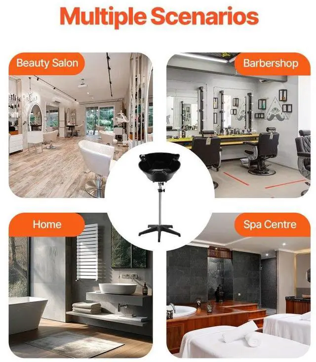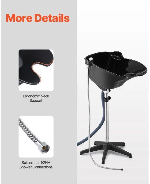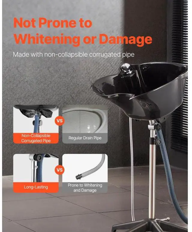 Portable Shampoo Bowl with Shower Head Drain Hose Adjustable Height Salon Sink