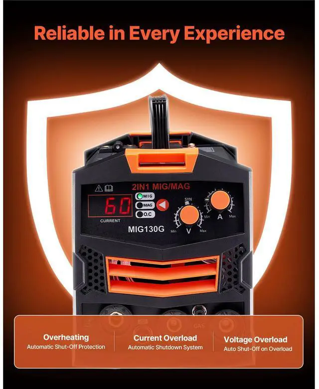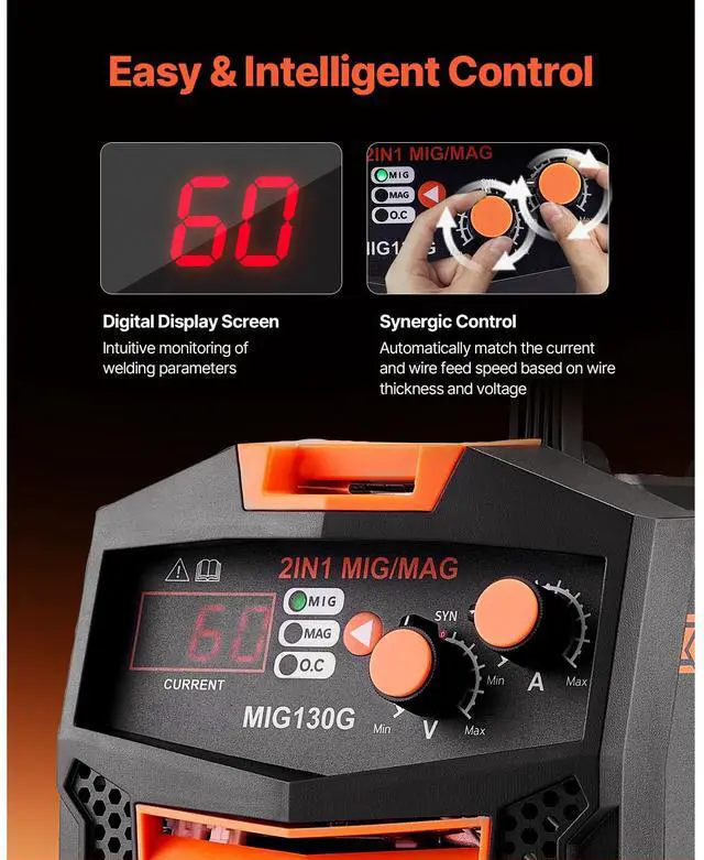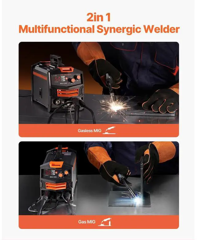 MIG Welder 130Amp Welding Machine 2-in-1 Gas MIG/Gasless Flux Core MIG Welder