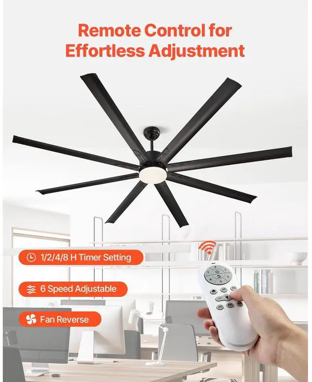 84 Inch Ceiling Fan with Light 6-Speed Remote Control Reversible Motor Black