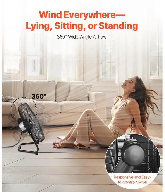 14 Inch Floor Fan 3 Speeds 360° Adjustable Tilt High-Velocity Industrial Fan