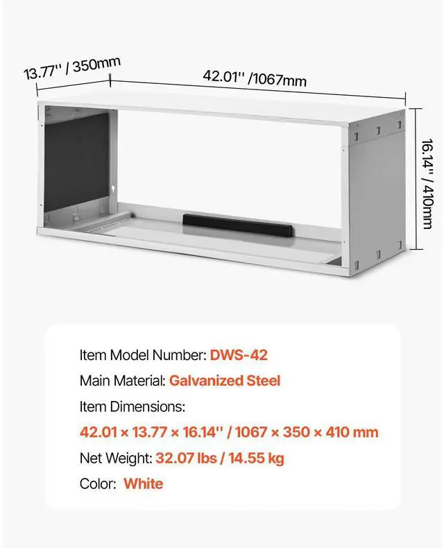 Color: White,Item Model Number: DWS-42,Item Dimensions: 42.01 x 13.77 x 16.14''/1067 x 350 x 410 mm,Net Weight: 32.07 lbs/14.55 kg,Main Material: Galvanized Steel