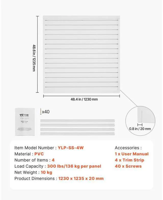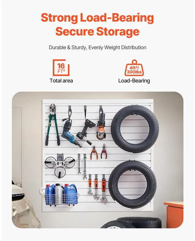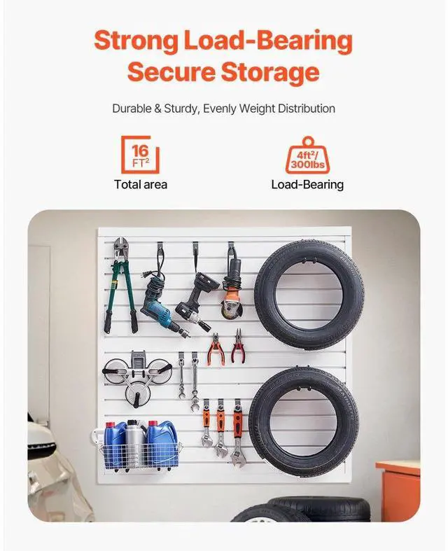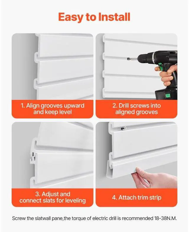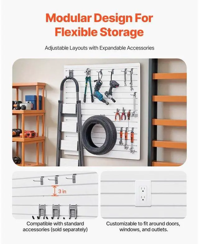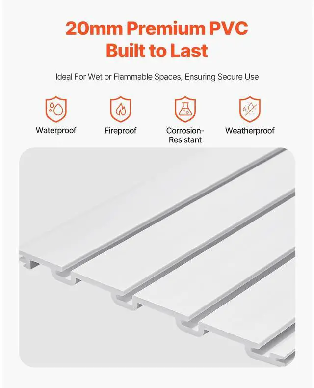 4 x 4 ft Slat Wall Paneling PVC White Garage Slatwall with Modular Design