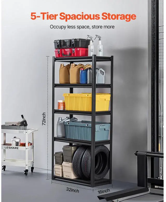 Storage Shelves 16" D x 32" W x 72" H 5-tier Garage Storage Shelving