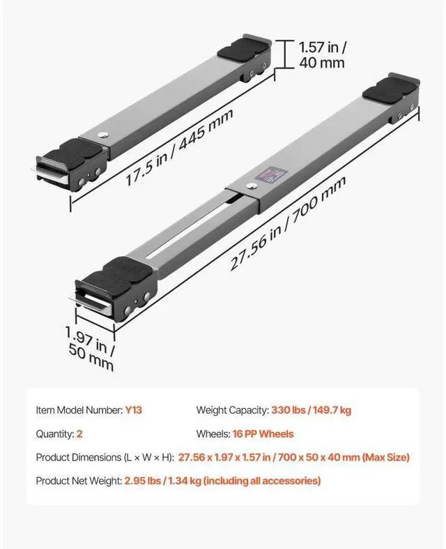 Weight Capacity: 330 lbs / 149.7 kg,Wheels: 16 PP Wheels,Item Model Number: Y13,Product Net Weight: 2.95 lbs / 1.34 kg (including all accessories),Quantity: 2,Product Dimensions (L x W x H): 27.56 x 1.97 x 1.57 in / 700 x 50 x 40 mm (Max Size)