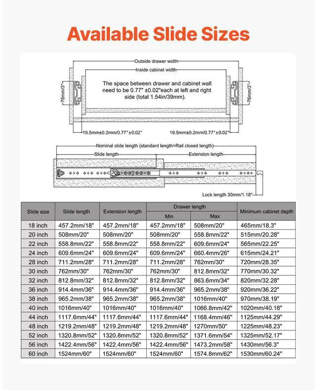 Suitable Drawer Length: 40.5" / 1028 mm,Extension Length: 40" / 1016 mm,Load Capacity: 500 lbs / 226.8 kg,Item Model Number: 7601Z-40",Product Dimensions: 41 x 3 x 0.77" / 1047 x 76 x 19.5 mm,Load Capacity (Fully Extended): 288 lbs / 130.63 kg,Net Weight: 22.05 lbs / 10 kg