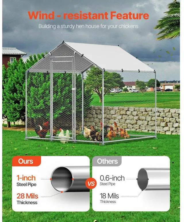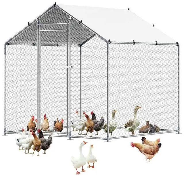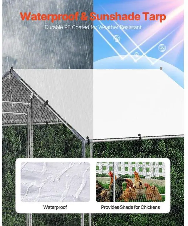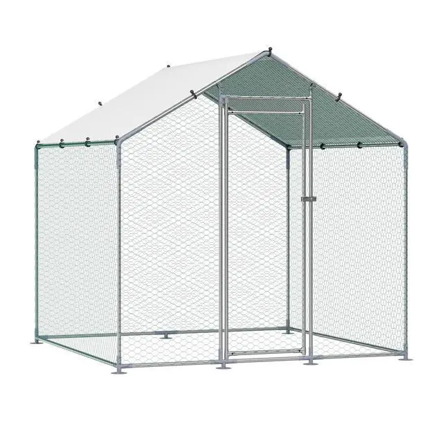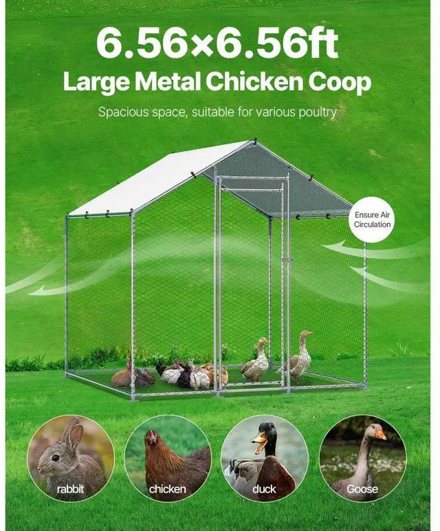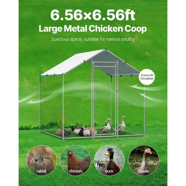 • VEVOR Metal Chicken Coop 6.56x6.56x6.56ft Walk-in Chicken Run with Cover Spire Roof