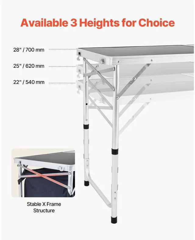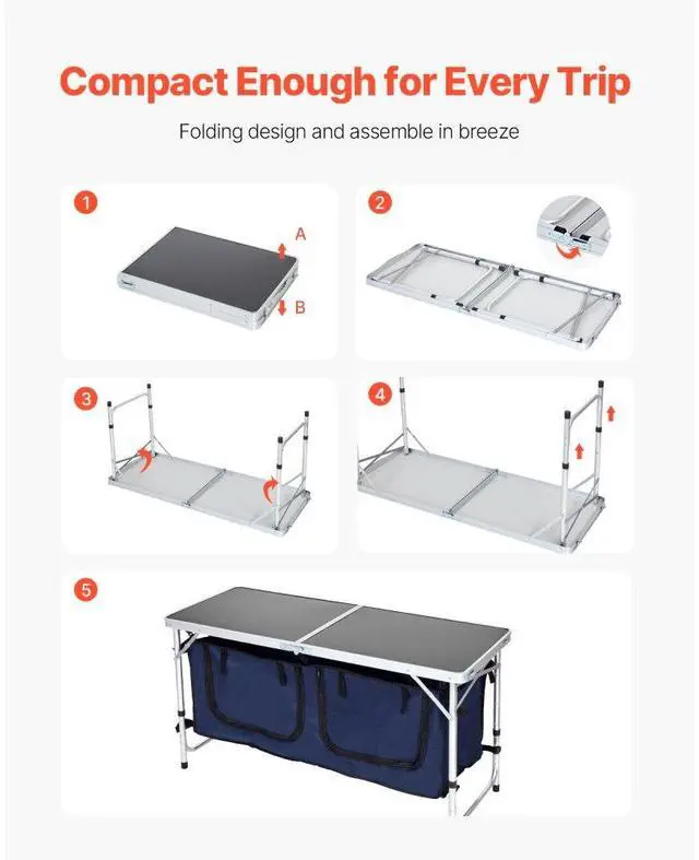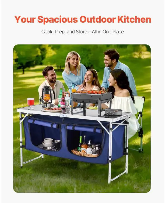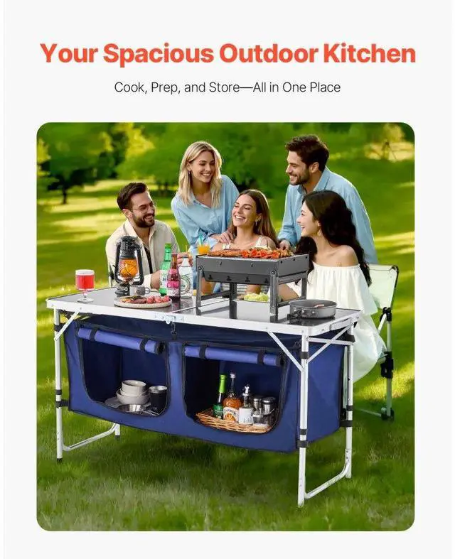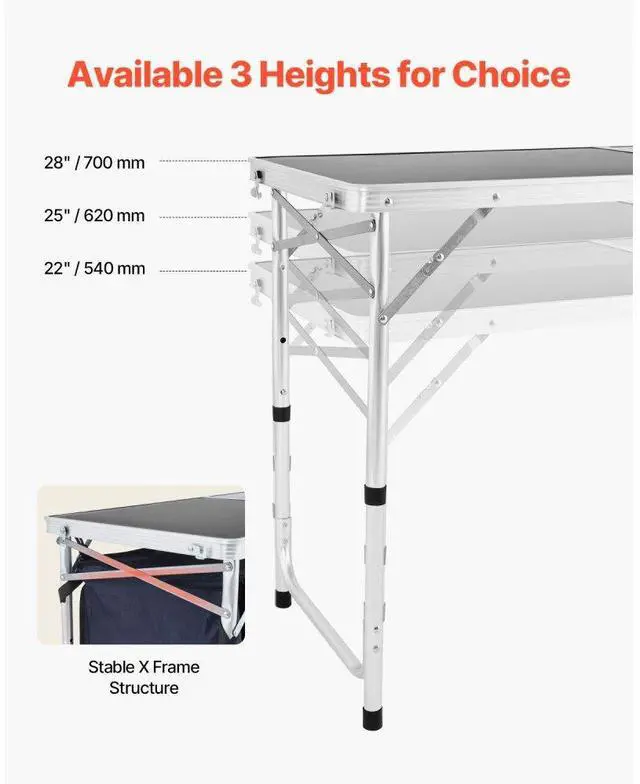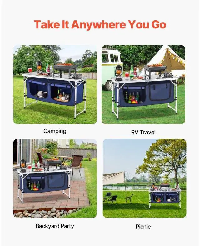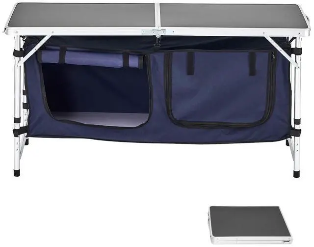 Camping Kitchen Table Folding Portable Cook Station 3 Adjustable Height Aluminum