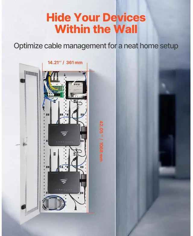 Structured Media Center Enclosure 28 in with Vented Hinged Door Cable Management