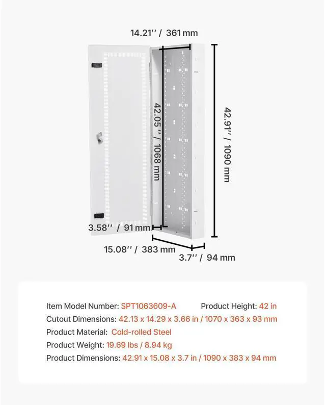 Cutout Dimensions: 42.13 x 14.29 x 3.66 in / 1070 x 363 x 93 mm,Product Material: Cold-rolled Steel,Product Height: 42 in,Item Model Number: SPT1063609-A,Product Weight: 19.69 lbs / 8.94 kg,Product Dimensions: 42.91 x 15.08 x 3.7 in / 1090 x 383 x 94 mm