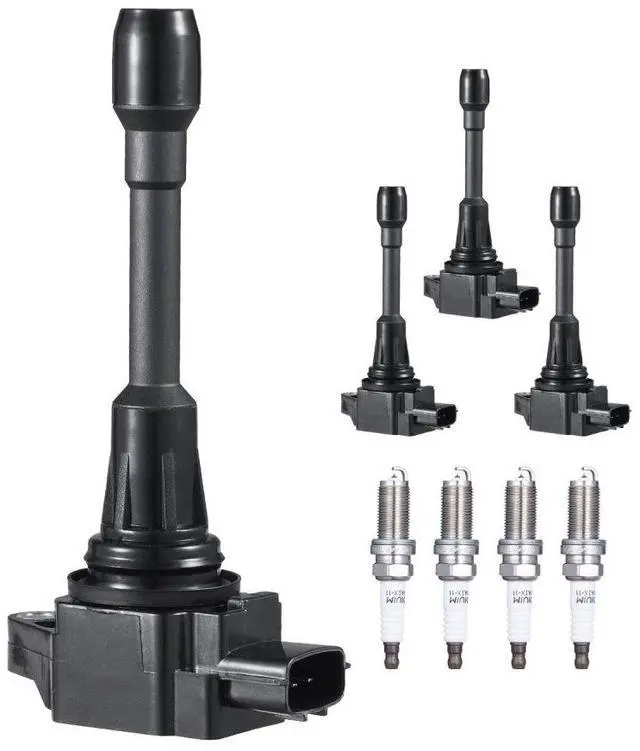 Ignition Coil Pack and Spark Plugs Set of 4 Compatible with Nissan Altima Versa