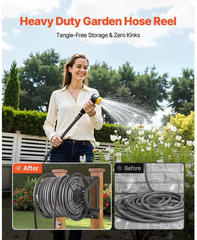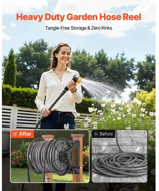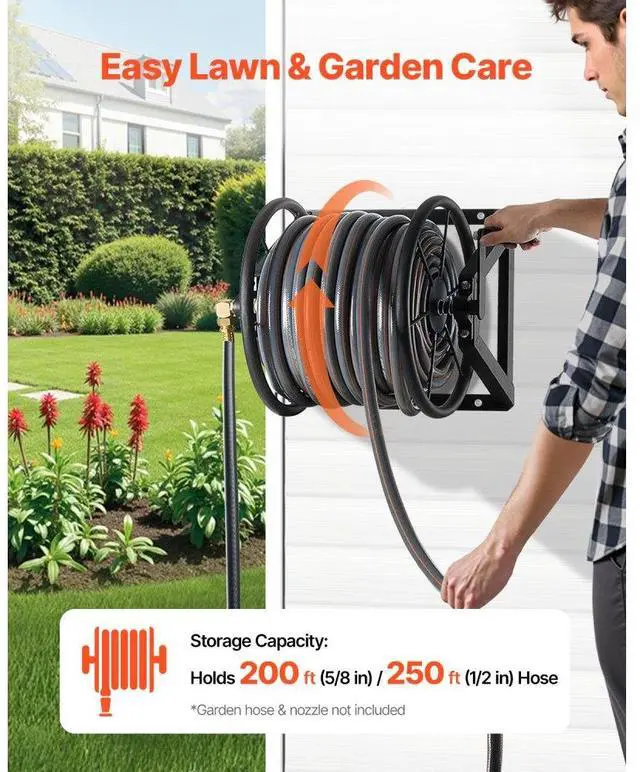 • VEVOR Wall Mounted Garden Hose Reel 200ft 5/8 in Manual Hose Winder Brass Fitting