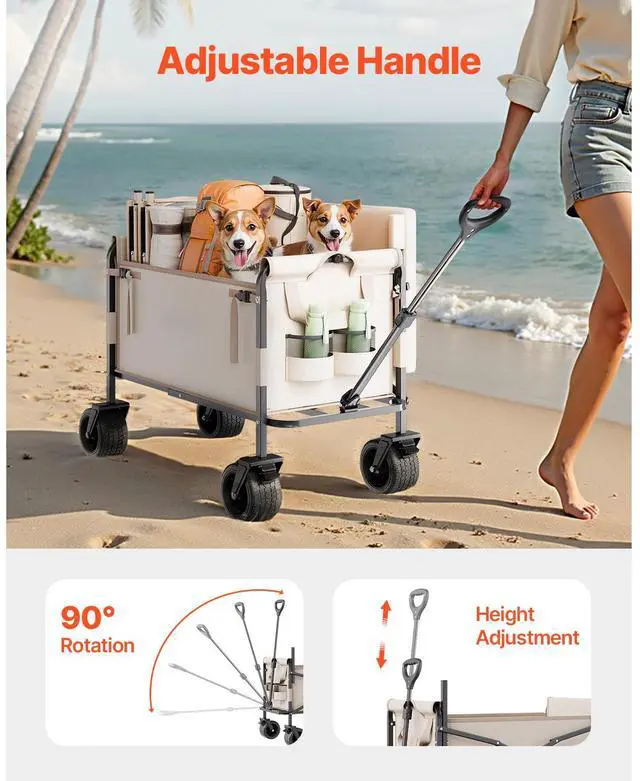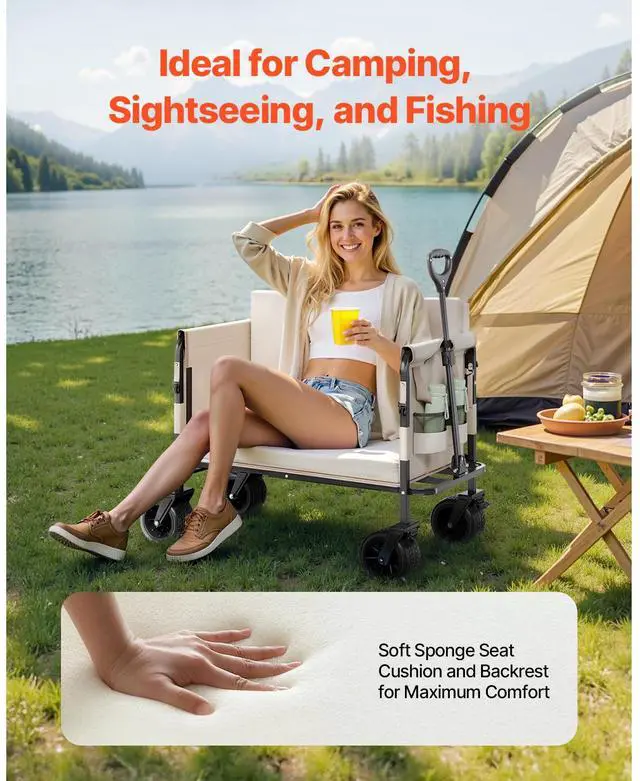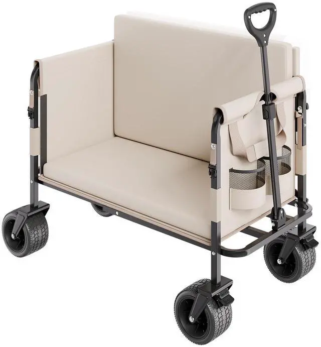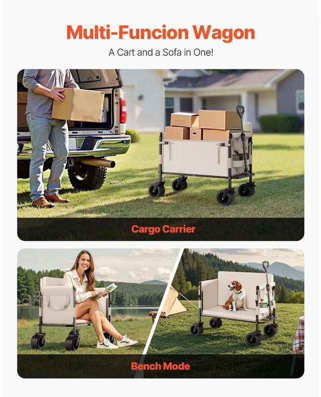 Foldable Wagon Cart Converts to Bench 450lb Load & 220L Utility Wagon for Camp