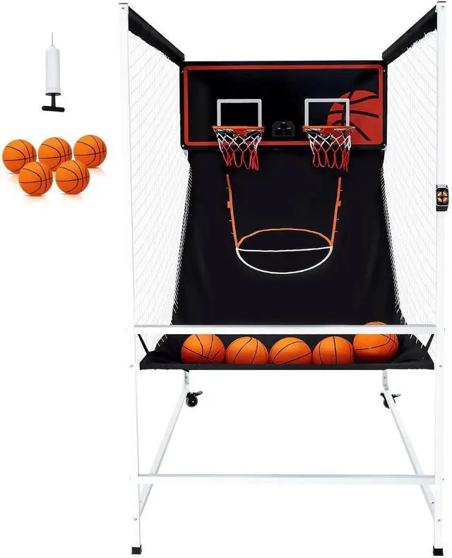 Arcade Cage Basketball Game, 2 Player Indoor Basketball Game, Home Dual Sport with 5 Balls, 8 Game Modes, Electronic Scoreboard, and Inflation Pump, for Kids, Adults (Black & White)