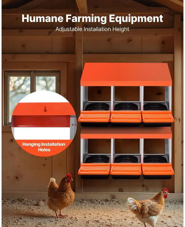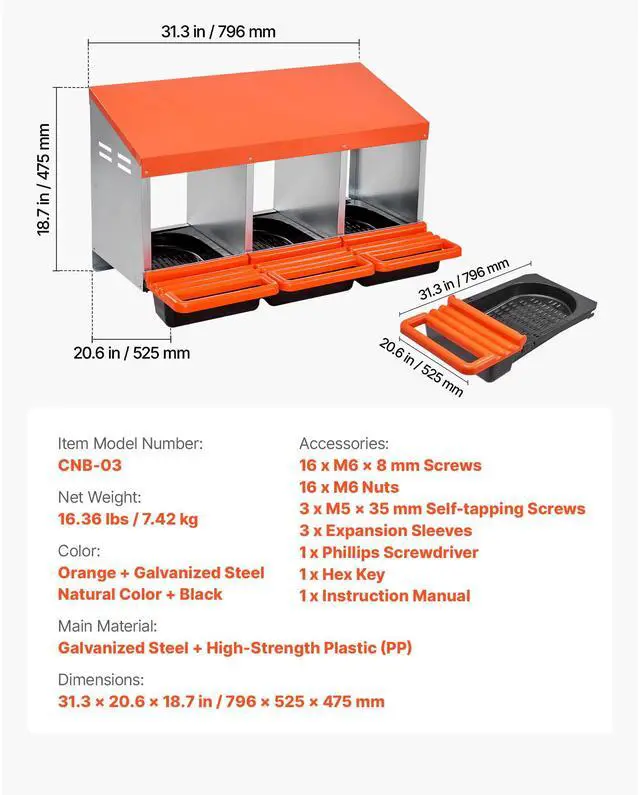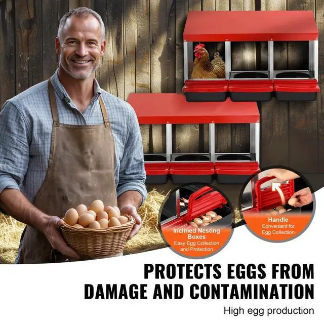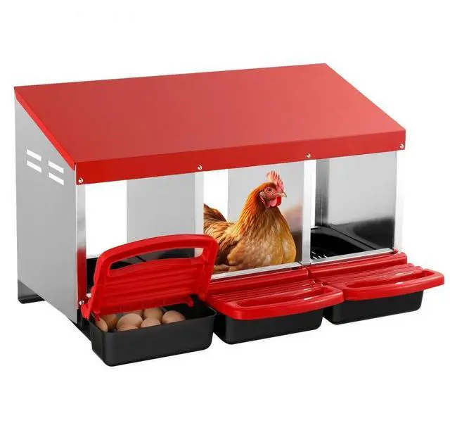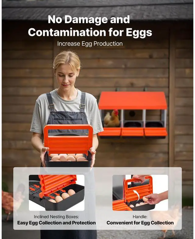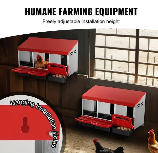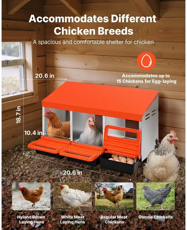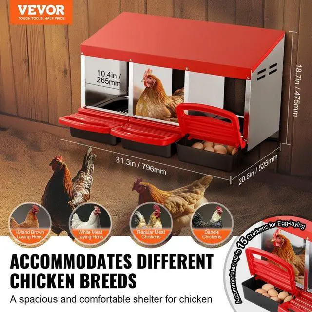 VEVOR 3-Compartment Chicken Nest Box Mental Box with Inclined Nesting Boxes Ample Space & Fit for Different Chickens Premium Materials, Sturdy & Durable Automatic Egg Collection & Safeguard Quick and Easy to Install Full of Abundant Accessories Easy to