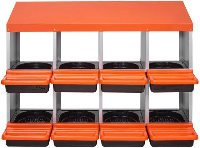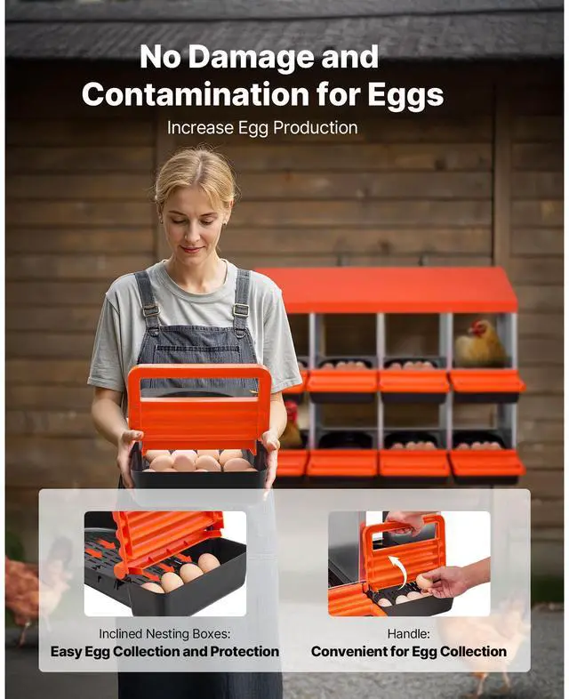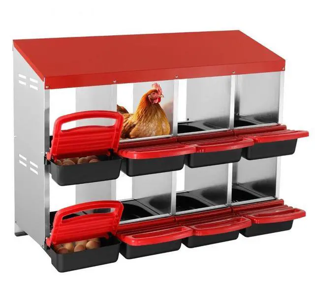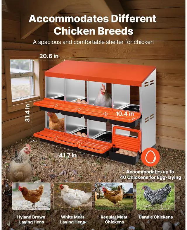 VEVOR 8-Compartment Chicken Nest Box Mental Box with Inclined Nesting Boxes Ample Space & Fit for Different Chickens Premium Materials, Sturdy & Durable Automatic Egg Collection & Safeguard Quick and Easy to Install Full of Abundant Accessories Easy to