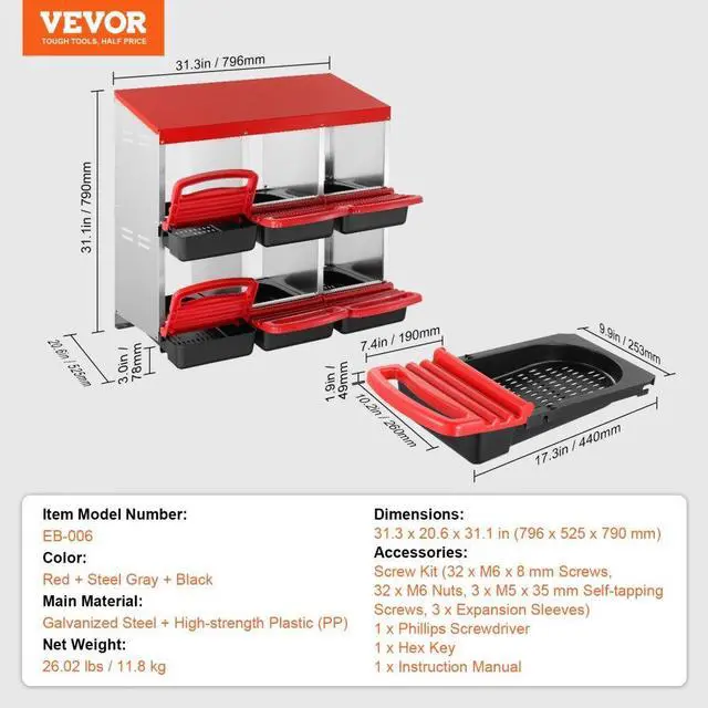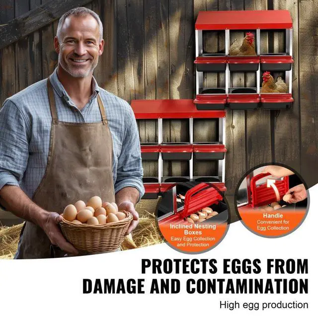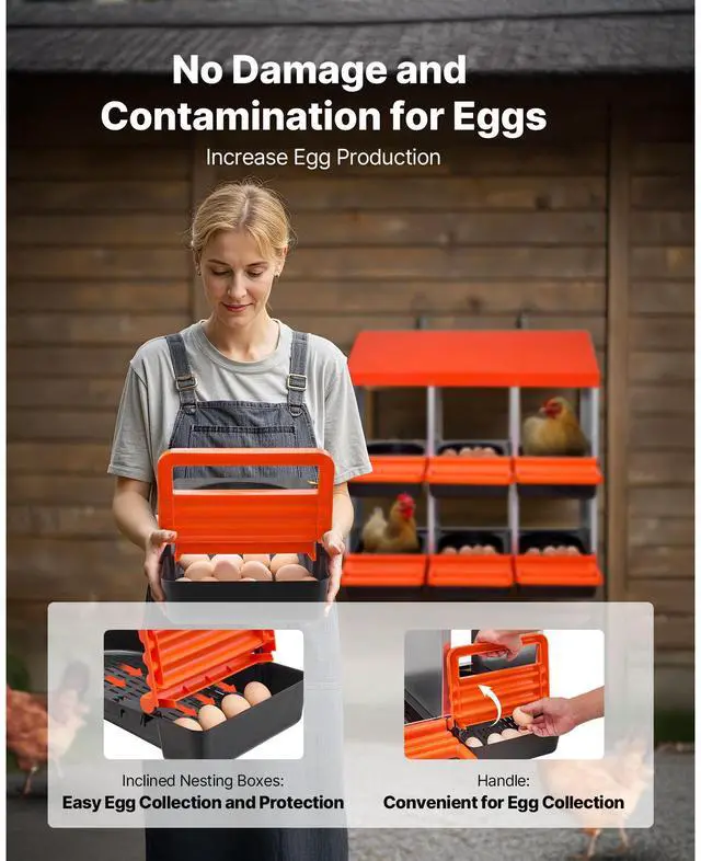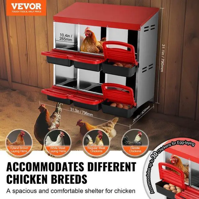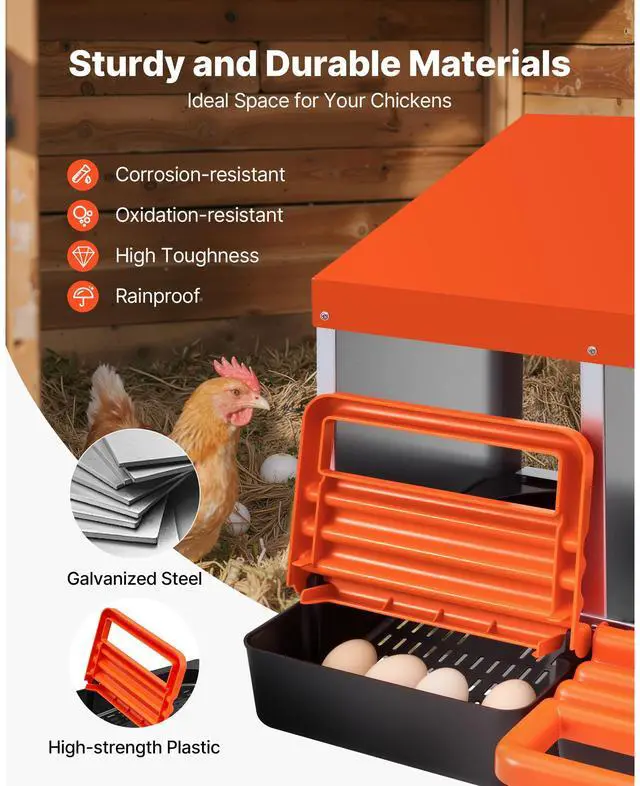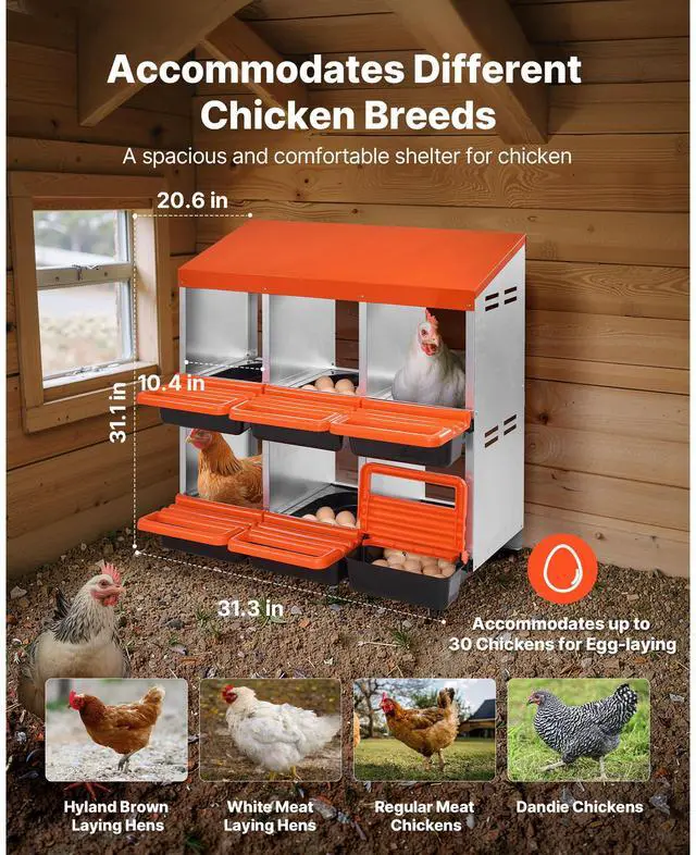 VEVOR 6-Compartment Chicken Nest Box Mental Box with Inclined Nesting Boxes Ample Space & Fit for Different Chickens Premium Materials, Sturdy & Durable Automatic Egg Collection & Safeguard Quick and Easy to Install Full of Abundant Accessories Easy to