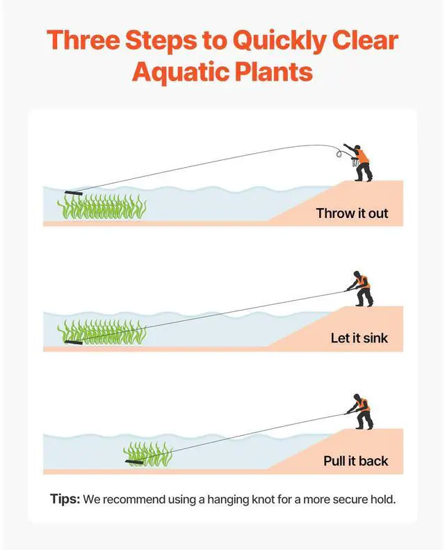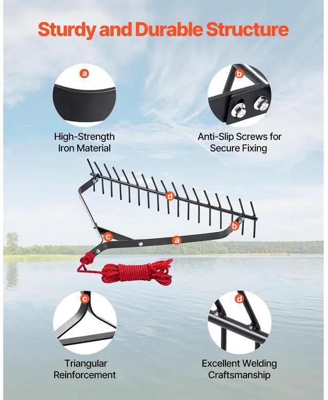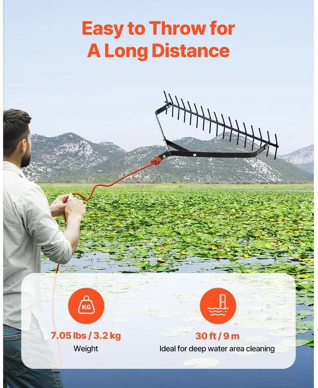 32x 6.3 in Pond Aquatic Weed Rake Double-Sided Lake Weed Removal Rake 30ft Rope Designed for Aquatic Weed Removal Durable and Strong Easy Operation, Significant Results Meets Cleaning Needs in Different Waters Wide Applicability Cleaning Effect Design: Rake Type, Rake Teeth Size (Label on