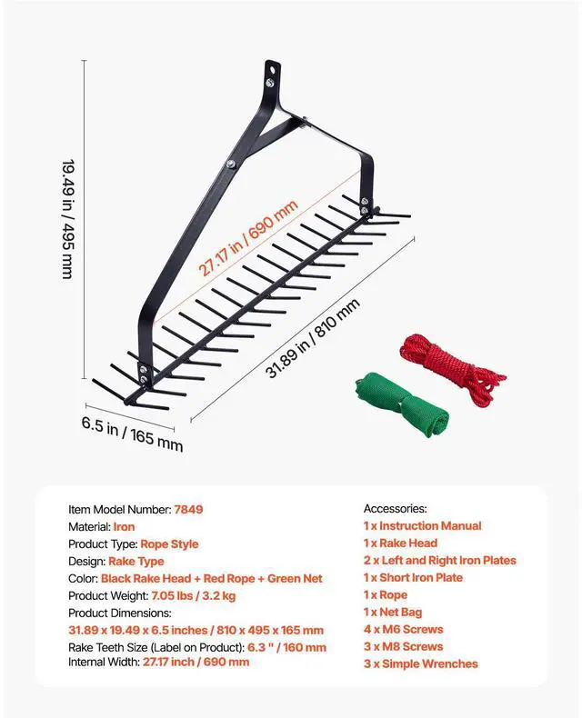 Color: Black Rake Head + Red Rope + Green Net, Item