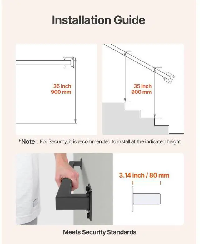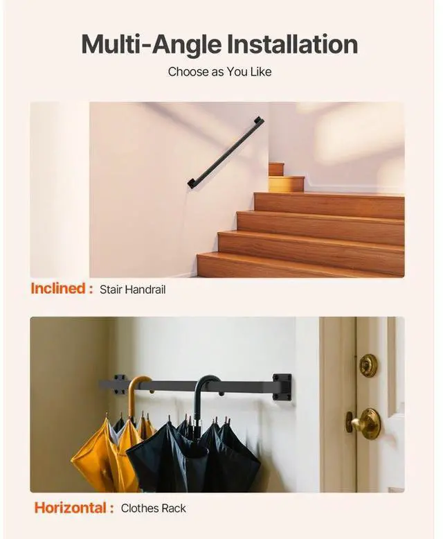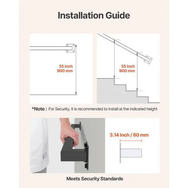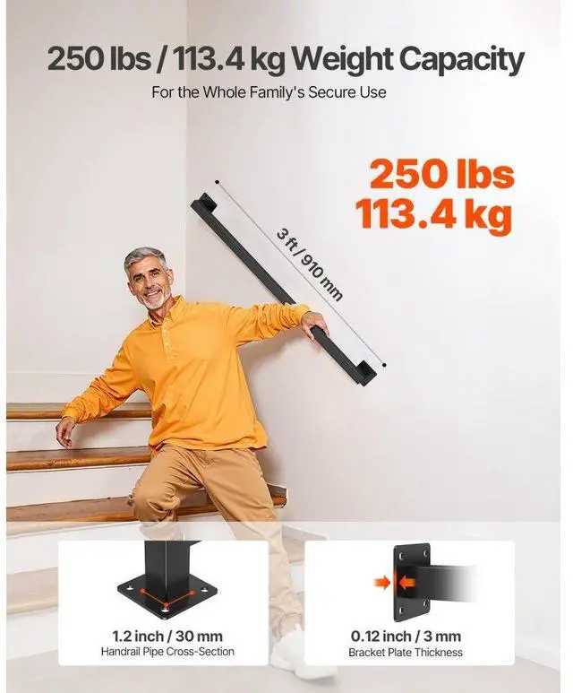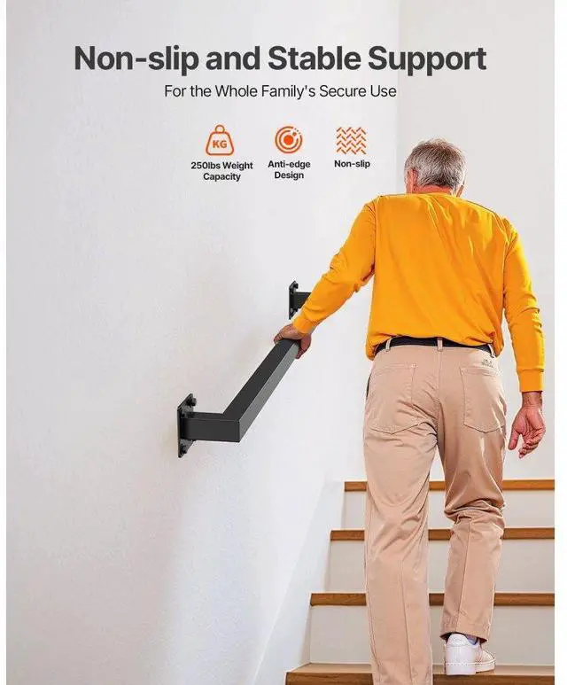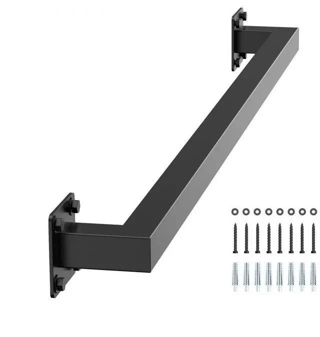 3ft Wall Mounted Stair Handrail Black Iron 250lbs Load Capacity Square Tube Carbon Steel Bracket Anti-Sharp Edge Design Versatile Black Easy Assembly Reinforced Brackets User-friendly