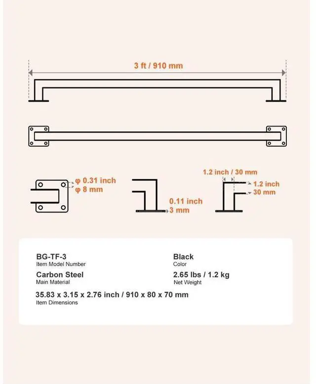 Dimensions: 35.83 x 3.15 x 2.76 inch / 910 x 80 x 70 mm,