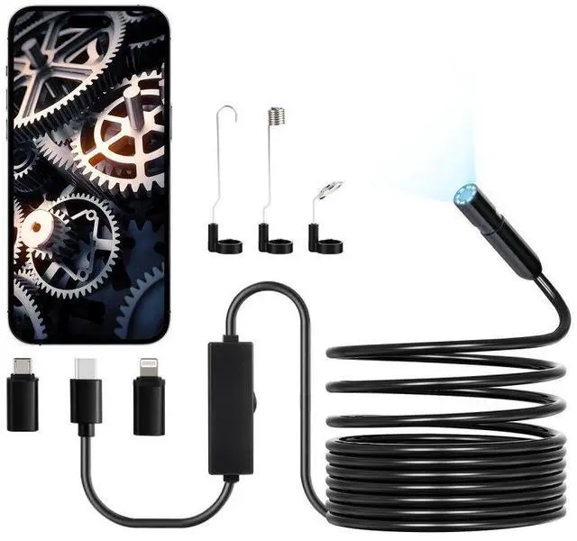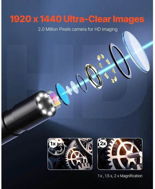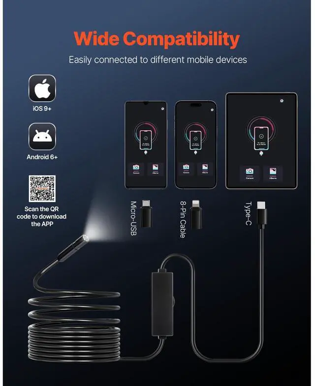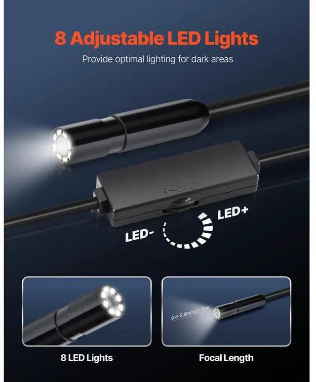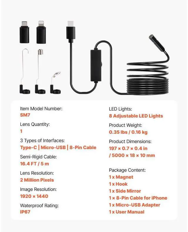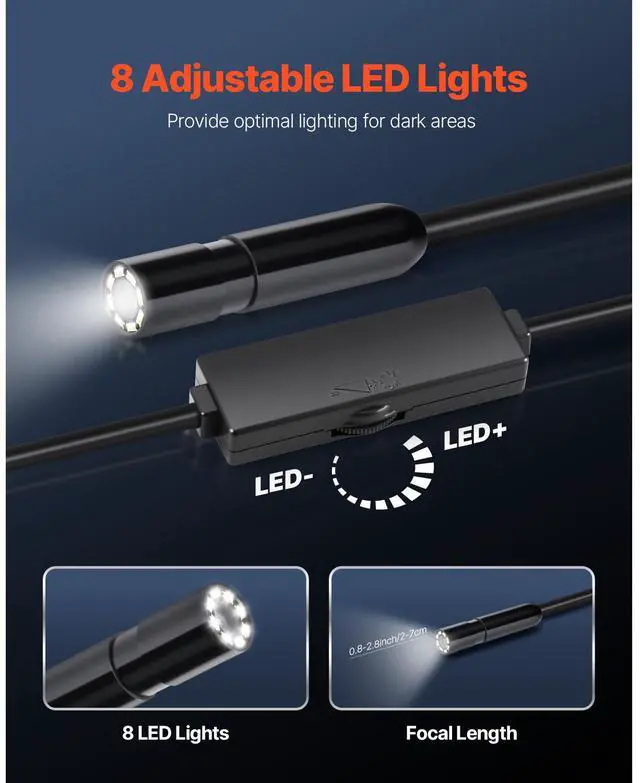 VEVOR Endoscope Camera 1920P HD Borescope for Android & IOS with 16.4FT Cable Clear Display Semi-rigid & Flexible Cable Wide Compatibility Adjustable Lights Optimal Focal Distance Wide