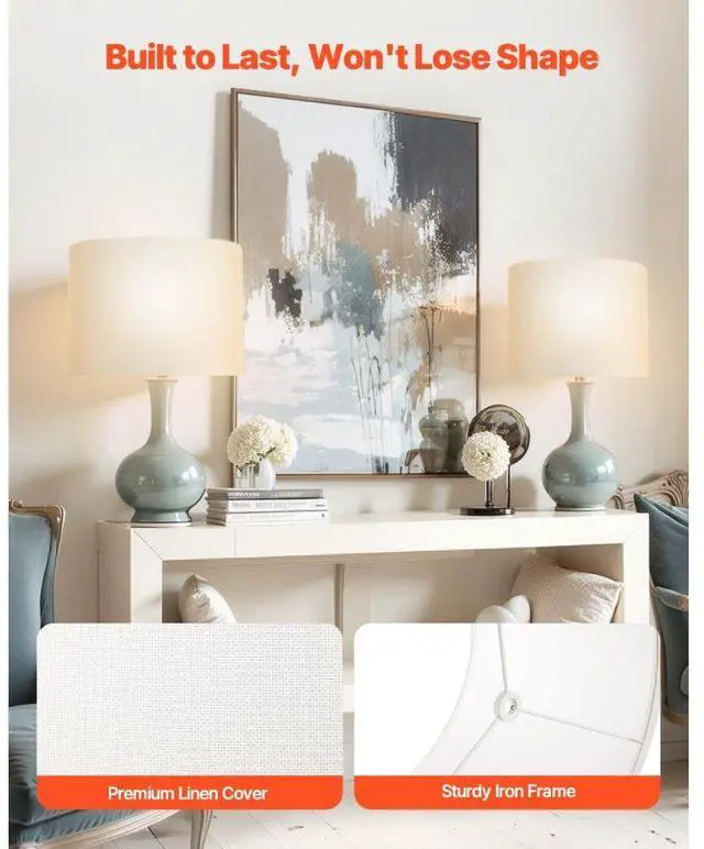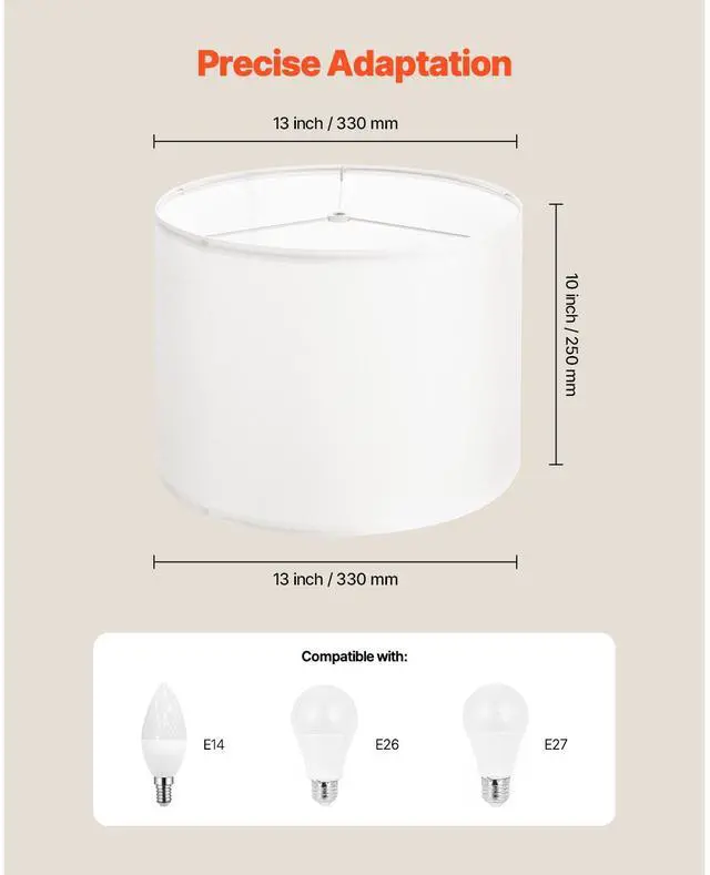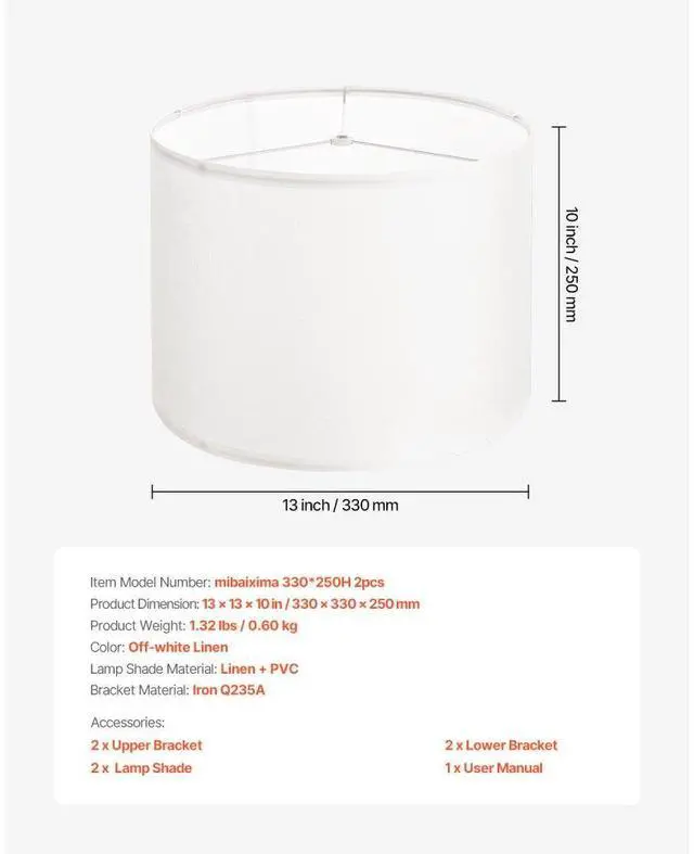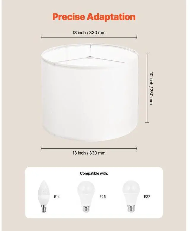 Drum Lamp Shade 2 Set 13 x 13 x 10 inches Medium Round Lampshade (Off-white) Excellent Light Diffusion Stable and Durable Ideal Fit Easy Installation Elegant Design Various Styles