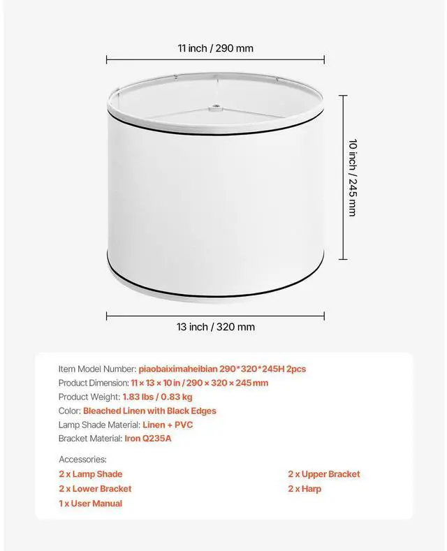 Lamp Shade 2 Set 11 x 13 x 10 in Lampshade with Harp and Spider Fitter (White) Excellent Light Diffusion Stable and Durable Ideal Fit Easy Installation Elegant Design Various Styles