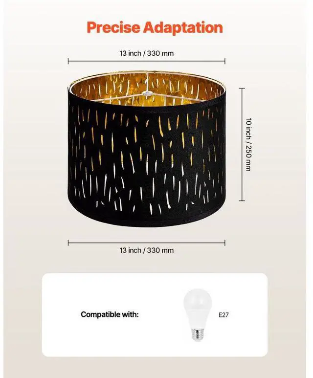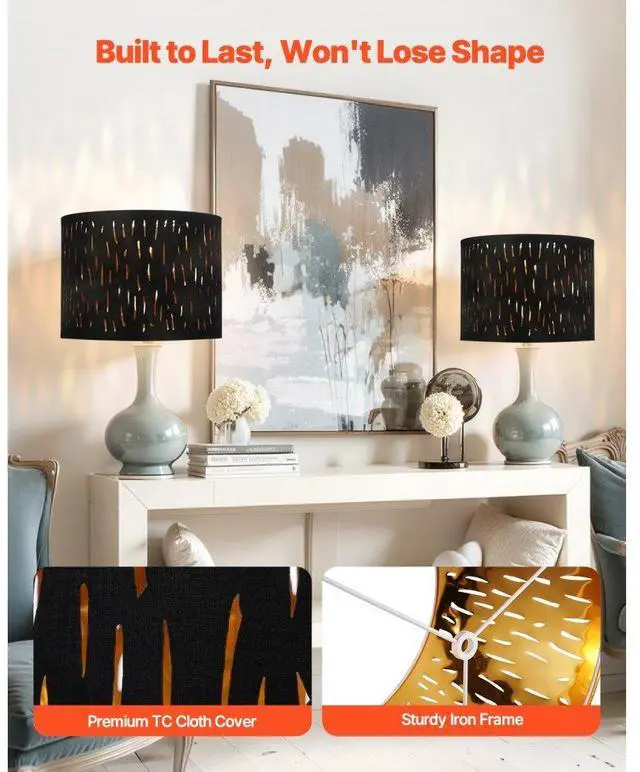 Drum Lamp Shade 2 Set 13 x 13 x 10 inches Medium Round Lampshade with Harp Excellent Light Diffusion Stable and Durable Ideal Fit Easy Installation Elegant Design Various Styles