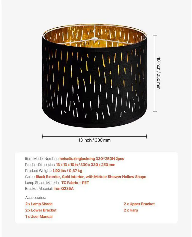 Product Dimension: 13 x 13 x 10 in / 330 x 330 x 250 mm, Color: Black Exterior, Gold Interior, with Meteor Shower Hollow Shape, Item