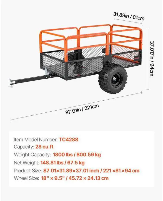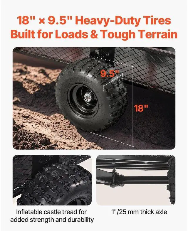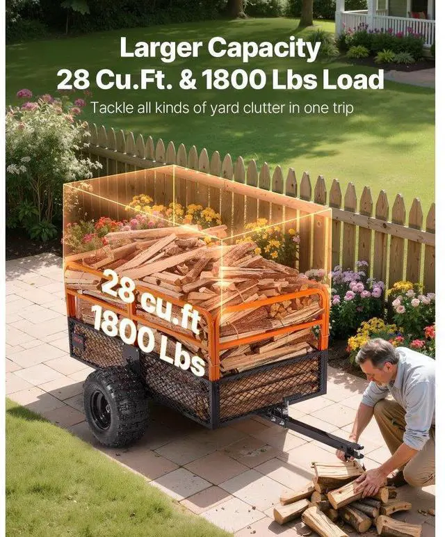 VEVOR Dump Trailer 1800 lbs 28 Cu. Ft Tow Behind Steel Garden Yard Trailer Cart Trailer Handle Pin Size Guard Panels Two Dumping Options Enhanced User Experience Large