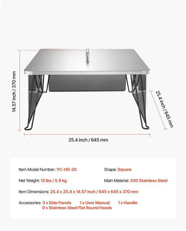 Item Dimensions: 25.4 x 25.4 x 14.57 inches / 645 x 645 x 370 mm
