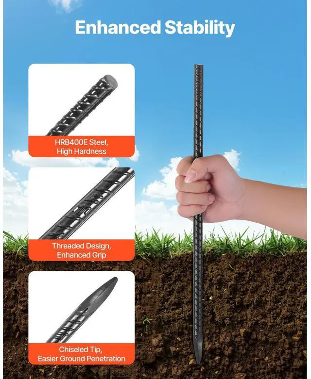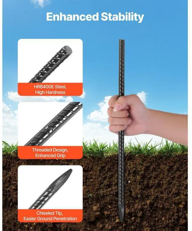 16-Inch 16 Pack Rebar Stakes Heavy Duty Straight Galvanized Steel Ground Anchors Straight Heavy Duty Rebar Stakes 0.45 -Inch Thick Galvanized Steel Black Anti-Rust Coating Easily Penetrates Various Surfaces Versatile Application Durable