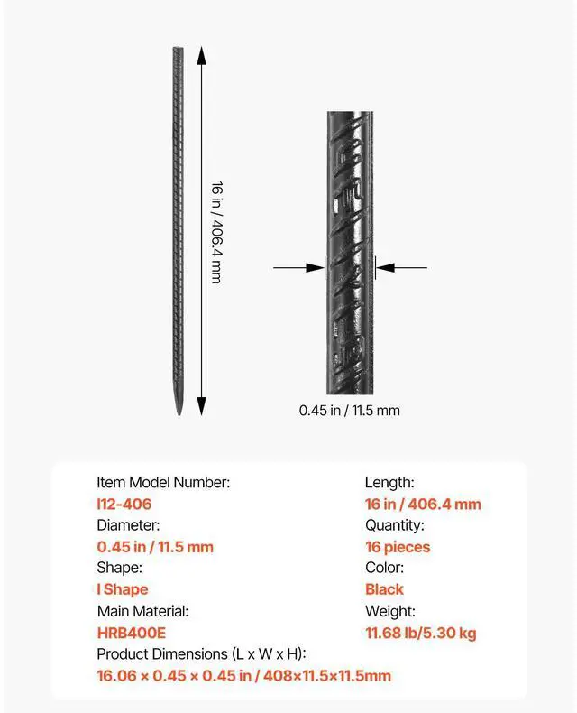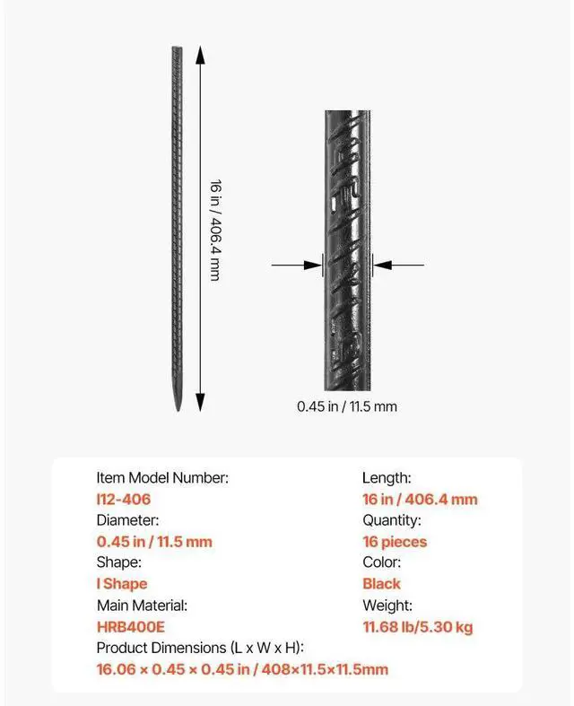 Material: HRB400E, Weight: 11.68 lb/ 5.30 kg