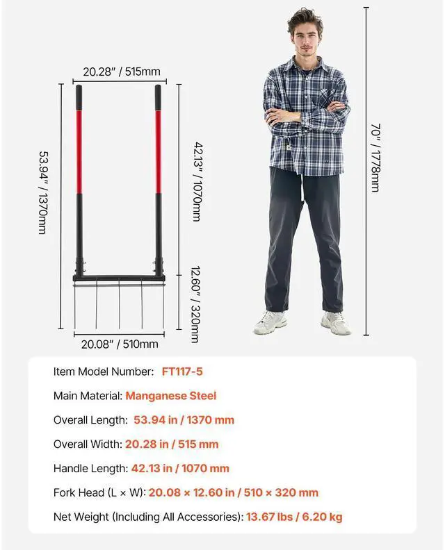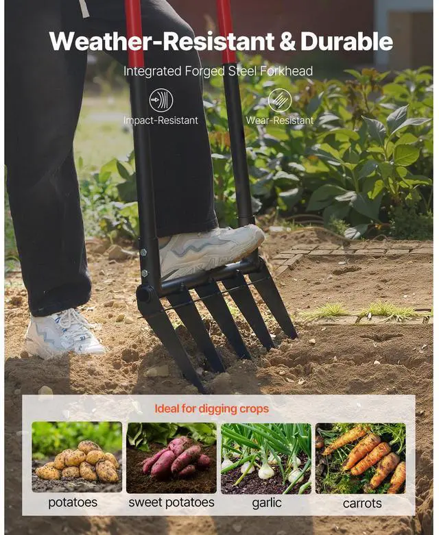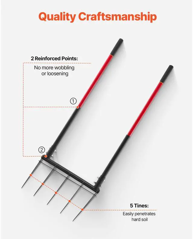 5 Tine Broad Fork Tool Heavy Duty U-Shaped Pitch Fork for Gardening Spading Effortless & Convenient to Use Ergonomic, Effort-Saving Design Integrated Forged Steel Fork Head High-Strength Handle Versatile Gardening Tool Optimized Tooth Spacing